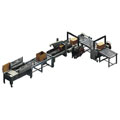 后道無(wú)人化全自動(dòng)紙箱包裝流水線從自動(dòng)開(kāi)箱→自動(dòng)裝箱→自動(dòng)稱重→噴碼→自動(dòng)I字型封箱→自動(dòng)四角邊封箱→自動(dòng)井字型捆扎→碼垛系統(tǒng)→自動(dòng)棧板打包→自動(dòng)水平捆扎→自動(dòng)在線纏..
