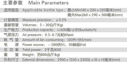 該機(jī)每一灌裝單元均由高精度稱(chēng)重傳感器、控制儀表和灌裝速度控制閥組成可實(shí)現(xiàn)快、慢速灌裝。