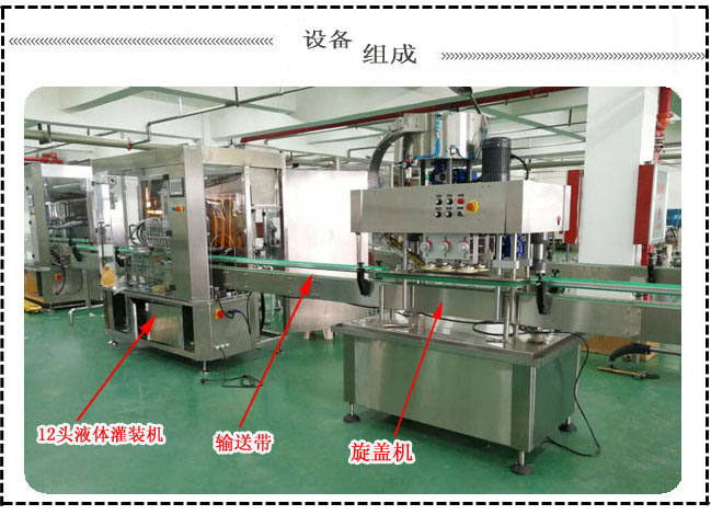 1、該生產(chǎn)線具有12個灌裝頭(可根據(jù)客戶的實際生產(chǎn)需求增減),灌裝精準(zhǔn),不滴漏